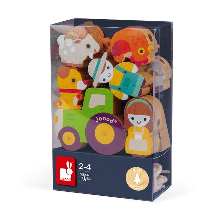 Bibouille vous présente ces Perles à enfiler Ferme, de la marque Janod, qui permettent de développer la motricité.