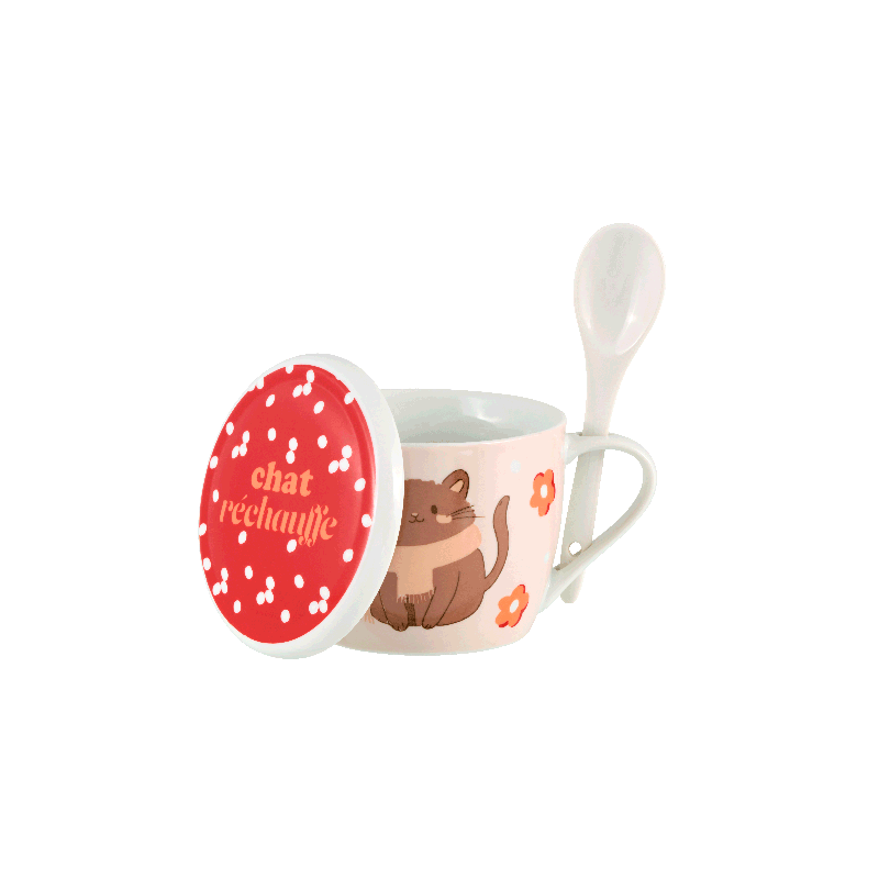 Bibouille vous présente le Bol à Soupe avec couvercle "Chat réchauffe!" de la marque Derrière La Porte.