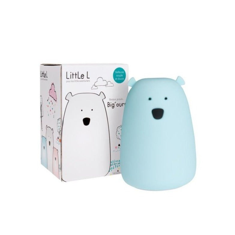 Bibouille vous présente cette jolie veilleuse tactile Big Ours Bleu de la marque Little L, souple, qui s'illumine d'une belle lumière douce et qui change de couleur.